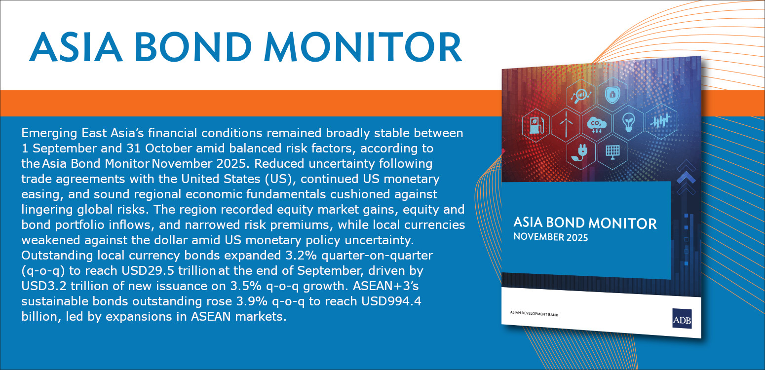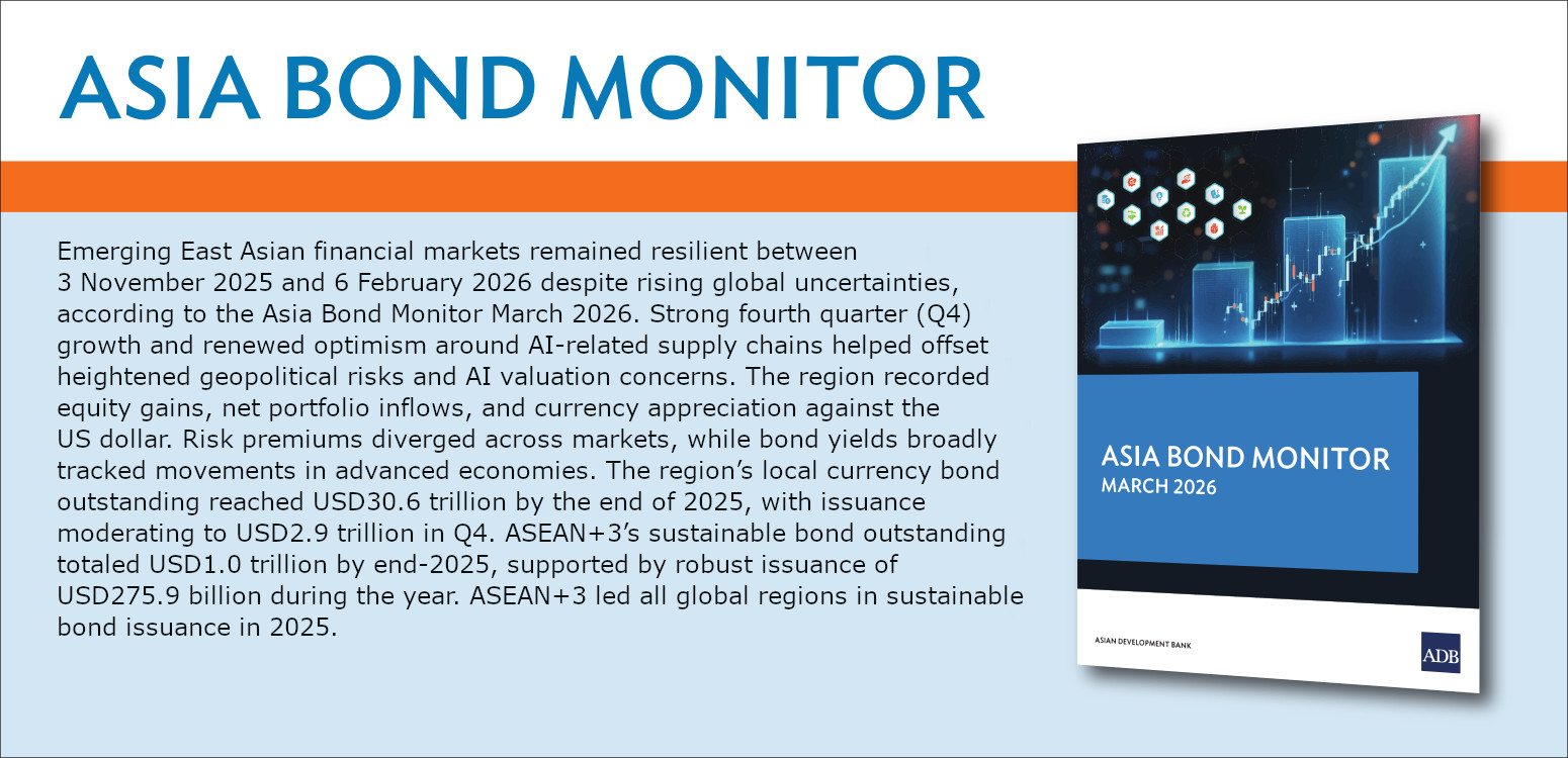 The AsianBondsOnline web portal is an ASEAN+3 Initiative supported by the Asian Development Bank and funded by the Government of Japan through the Japan Fund for Prosperous and Resilient Asia and the Pacific. Read more.